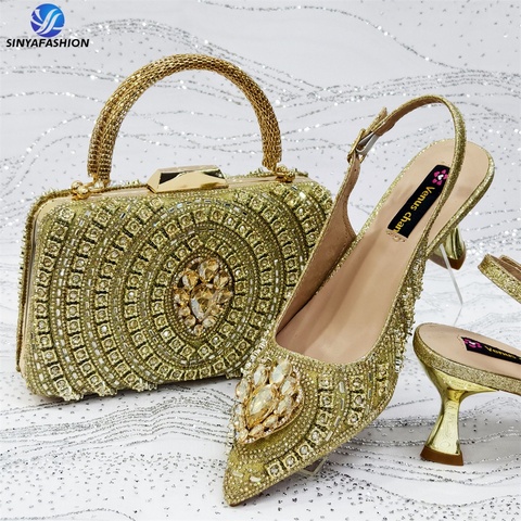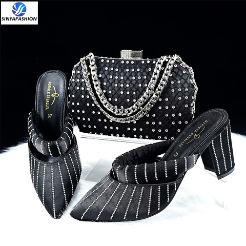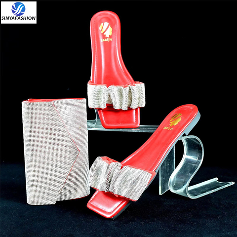 Sinya ชุดรองเท้าคลัทช์คริสตัลหรูหราออกแบบได้เองขายส่งฤดูร้อนกระเป๋ารองเท้าสไตล์อิตาลีสำหรับสุภาพสตรีชาวแอฟริกัน